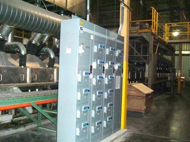 JE Shekell was asked to quote 4 ground mounted air handlers rated at 100,000 cfm each with duct running throughout the plant to discharge fresh air in 18 places. Also to install a motor control center to run these 4 fans. Schott Gemtron’s goals were to reduce the negative air pressure in the plant and to provide ventilation air for the in plant equipment and employees. There are 4 ovens that run the length of this room where they make the glass tops for quite a few manufacturers of electric kitchen stoves. (Look in the corner of your stove at home it may say “Schott” in one corner)